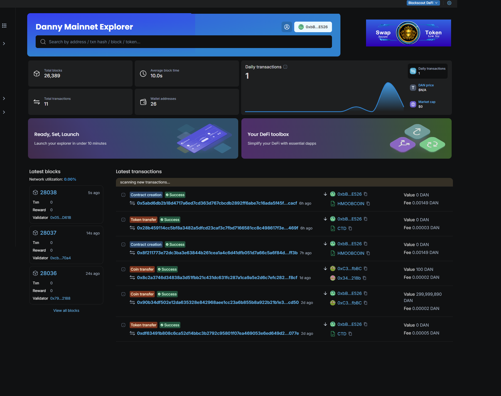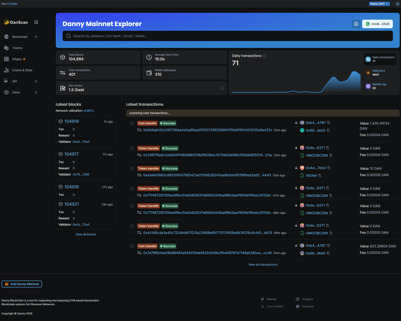 DannyChain, A truly decentralized layer 2 blockchain powered by smart technology. Offering EVM compatibility, low cost, massive scale, and Ethereum security.
